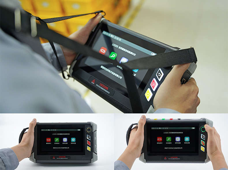 1、锂电池供电,且电池可更换,并可选配多块电池与电池座充,满足现场连续测试。